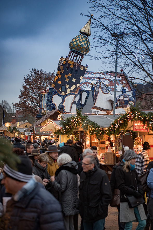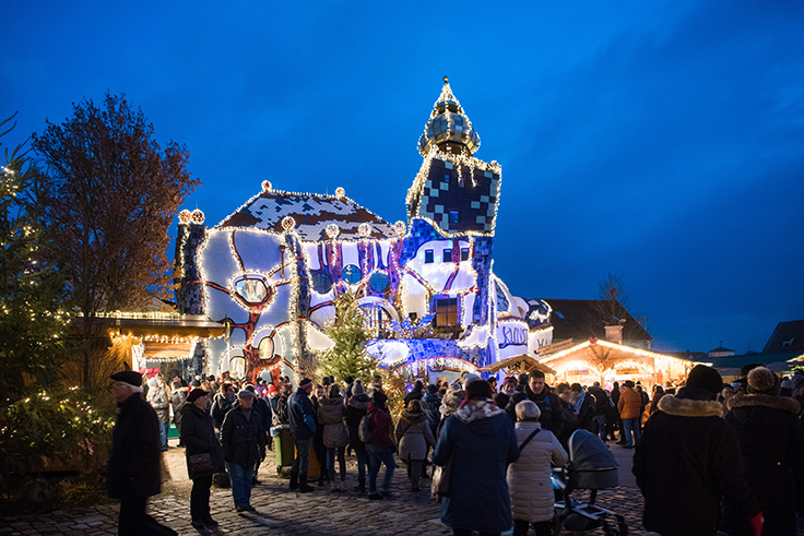 Zur Weihnachtszeit sticht vor allem der aufstrebende und hell erleuchtete Kuchlbauer-Turm auf dem Brauereigelände hervor. Auf 35 Metern windet er sich in die Höhe und erzählt von der Symbolik des Bierbrauens, Panoramablick inklusive. Tanzende Fenster, gewundene Formen, unebene Böden und vergoldete Zwiebeltürme zeugen vom Vermächtnis Hundertwassers. Nach seinem Tod übernahm sein Freund Peter Pelikan die architektonische Umsetzung. Die Eröffnung erfolgte zum Tag des Bieres am 23. April 2010. Das Kunsthaus geht vollständig auf die Pläne des Wieners Pelikan zurück, es wurde 2014 eingeweiht.