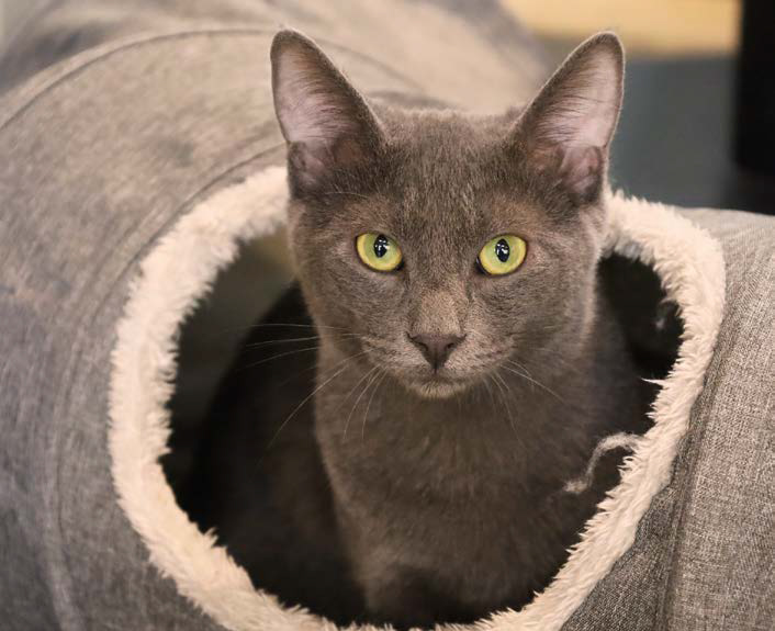 Aber Achtung, „die sind nicht nur sehr neugierig, die sind auch sehr, sehr schnell,” sagt Betriebsleiterin Dagyoung Lee. Tatsächlich: Immer, wenn die innere Tür aufgeht, schießt der graue Kater Shadow mit seinen smaragdgrün funkelnden Augen zwischen den Beinen der Besucher hindurch in den Durchgang und muss von einer Mitarbeiterin wieder ins Restaurant gelockt werden.