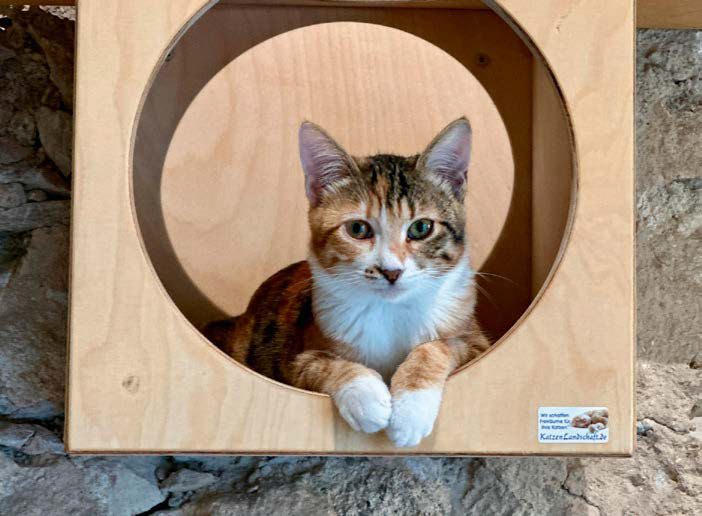 Vier junge Katzen schauen neugierig durch den Gitterdraht eines offenen Fensters in der Obermünsterstraße 19, schnuppern an den Fingern von drei Frauen, die vom Bürgersteig vor dem Regensburger Katzentempel aus mit ihnen spielen wollen. Doch wer Oreo, Daisy, Shadow und Luna streicheln oder nach einem blauen Plüschwurm an der Angel jagen lassen möchte, darf nicht draußen stehen bleiben, sondern muss durch die Doppeltüren des gläsernen Eingangskorridors das gemütliche Innere des Restaurants betreten.