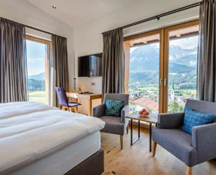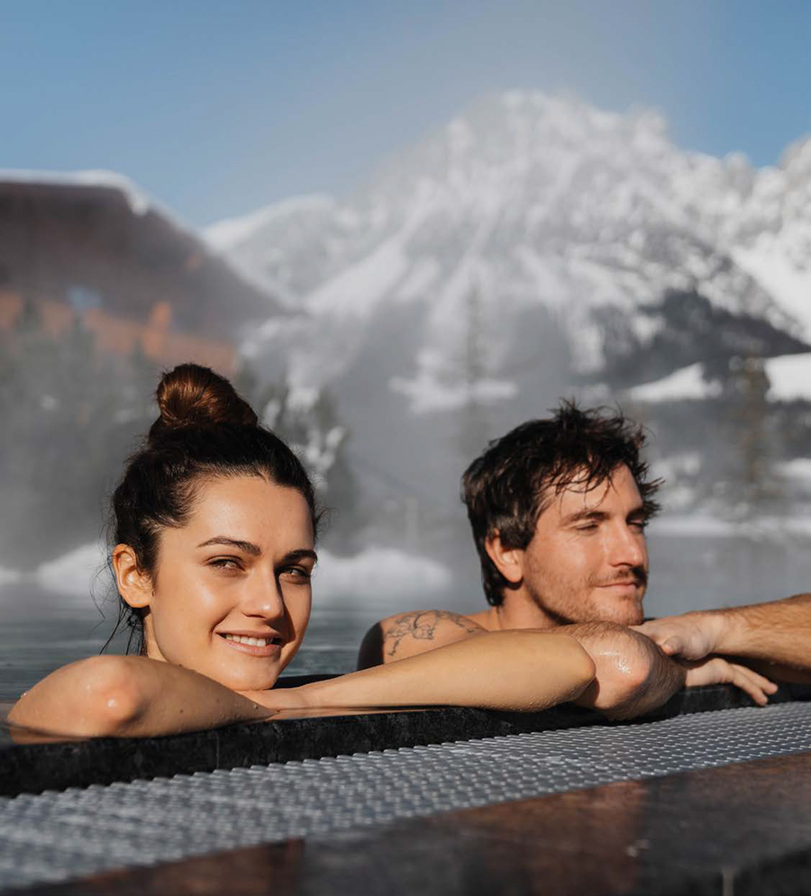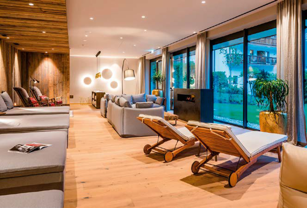Ob bei einem romantischen Wellnesstrip zu zweit oder beim aktiven Familienurlaub in Tirol, in den gemütlich eingerichteten Zimmern und Suiten kann man sich nur wohlfühlen. Holz, sanfte Erdtöne und edle Stoffe wie Tiroler Loden holen die Natur nach drinnen. Große Fenster geben den Blick auf das atemberaubende Panorama der Berge frei. Individuell durchdachte Raumkonzepte haben wahre Wohlfühlzonen geschaffen, die dank des modernen Badezimmers und des übergroßen Bettes keine Wünsche offen lassen. Ebenso stilvoll und gemütlich sind die separaten, am Waldrand gelegenen Außensuiten eingerichtet. Sie verfügen über einen separaten Eingang, Balkon oder Terrasse und bieten teilweise sogar einen Kamin für romantische Momente zu zweit am prasselnden Feuer. Das luxuriöse Bad sowie die Küchenzeile laden Gäste zum Verweilen und Genießen ein. Der Blick aus dem Badehaus ist atemberaubend. Noch mehr Freiheit verspürt man, wenn man ihr im 30 Meter langen Panoramapool quasi entgegen schwimmt. Dabei ist dieser nur eines der Highlights, die der große Wellness- und Spa-Bereich des Bären zu bieten hat: eine immergrüne Liegewiese mit Blick auf die Berge, klassische Sauna, Dampfbad, Panorama-Sauna und Brechlbad, dazu ein 31 Grad warmer Infinity-Pool sowie wohltuende Beauty- und Massageanwendungen. Wer es sportlicher mag, nimmt am „Morning Yoga“ teil oder trainiert seine Muskeln an modernsten Trainings- und Cardiogeräten im Fitnessraum.