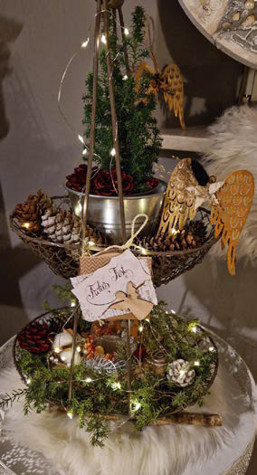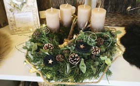 Zwei Freundinnen verlassen mit Adventskränzen den Christkindlmarkt in Oberpiebing. Der eine ist schlicht, Moos mit dicken Kerzen und Gräsern quer durch die Mitte, beim anderen bilden vier Kerzen eine Allianz auf Moos gegen eine üppige Komposition von Zapfen, Tannen, Eukalyptus, Heidelbeerkraut, schwarzen Kordeln und etwas Golddraht. Eine Jutekordel und eine Mikro- Lichterkette winden sich rundherum. In der Mitte liegt ein kleines Geweih. Eine erzählt strahlend: „Ist der nicht eine Schau? Der schönste von allen!“ – „Nein, das ist meiner!“ Beide schauen sich überrascht an, dass ihr Geschmack sich hier unterscheidet. Schnell sind sie sich wieder einig: „Das finde ich sonst nirgendwo!“