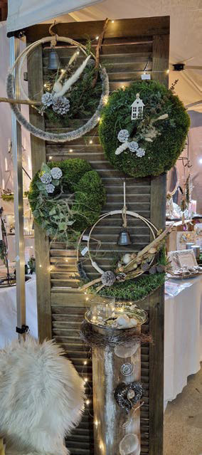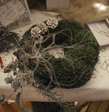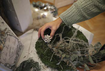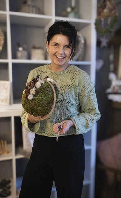 Den Händen der lockigen Brünette sieht man die Vorweihnachtszeit an. Stunden in der Werkstatt haben die Haut angeraut, Reste von Nadeln und Moos sich tief unter kurze Nägel gegraben. Die Natur hat es ihr angetan. Sie erntet Blütenstände im Garten und kennt Stellen, wo (nicht geschütztes) Moos gut nachwächst. Nachhaltigkeit und Kreativität sind ihr wichtig. „Meine Deko ist selten rein weihnachtlich, eher winterlich.“ Die Kunden können teils mit wenigen Handgriffen selbst Draht, Tannen und Sterne entfernen, einen Loop als jahreszeitliche Deko oder sogar das ganze Jahr nutzen. Dazu regt Schwarz gezielt an, gibt Tipps an dem gekauften Werkstück selbst kreativ zu werden. Oder einen Mooskranz mehrere Jahre zu verwenden. Sie fordert auf: „Schafft eine ruhige Basis, kombiniert, werdet kreativ und folgt eurem Gefühl.“