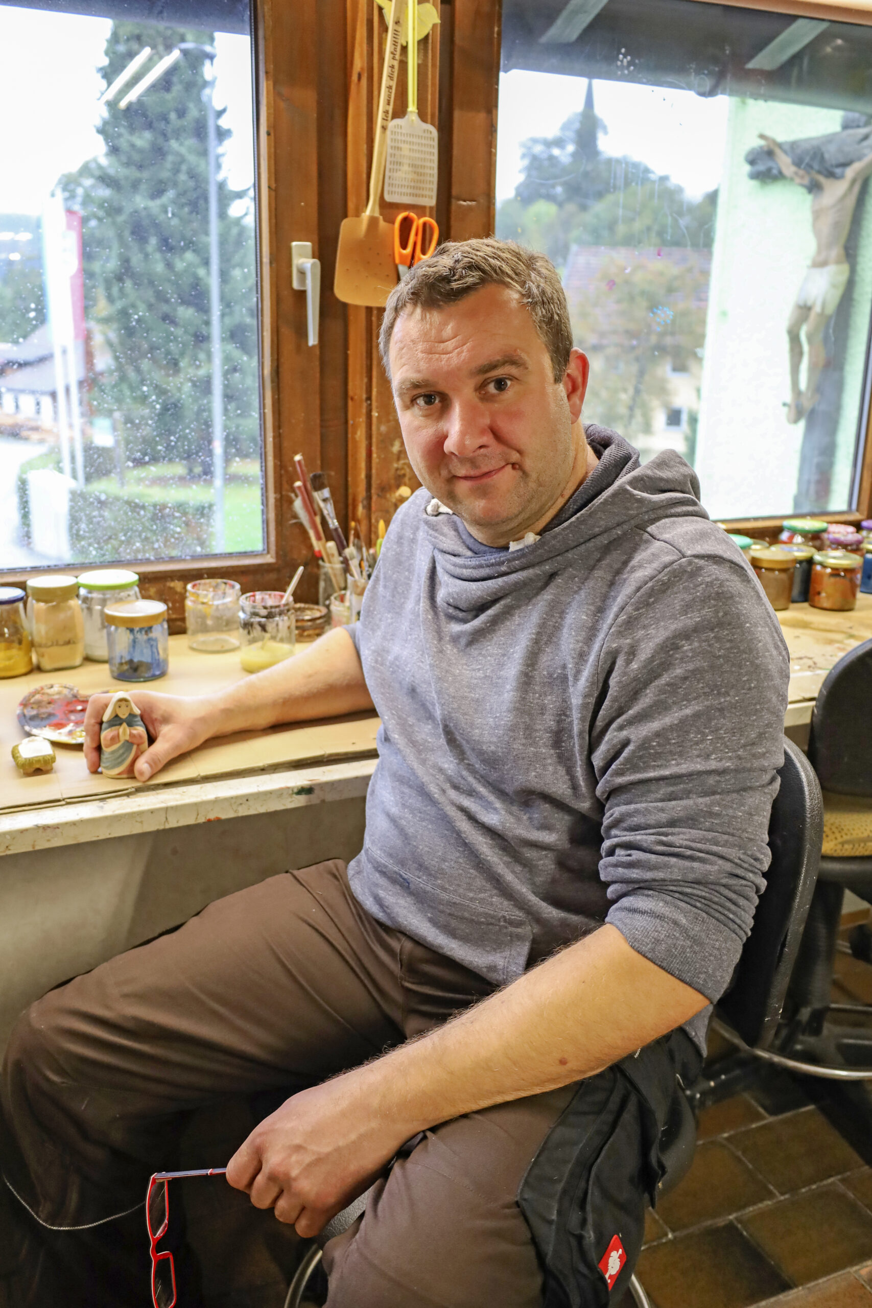 Religiöse Volkskunst ist das Markenzeichen des 46-Jährigen, dessen Wurzeln bis nach Israel reichen. Sein Großvater war Diplomat in Haifa, sein Vater lernte das Handwerk des Holzbildhauers in Garmisch-Partenkirchen. Bis es ihn Anfang der 1960er-Jahre in den Urlaubsort tief im Bayerwald verschlug. Heute führt Sebastian von Zülow als eines von vier Geschwistern den Betrieb, seines Zeichens ausgebildeter Kirchenmaler. Der Begeisterung für den Werkstoff Holz konnte er sich aber schon als Kind nicht entziehen. „Meine erste selbst geschnitzte Figur war ein Fisch“, erinnert er sich. Da verwundert es wenig, dass das Fliegenfischen neben dem Imkern und Schnitzen zu seinen liebsten Hobbys gehört. Denn eines haben alle drei Tätigkeiten gemein: „Du brauchst viel Geduld und viel Gefühl.“