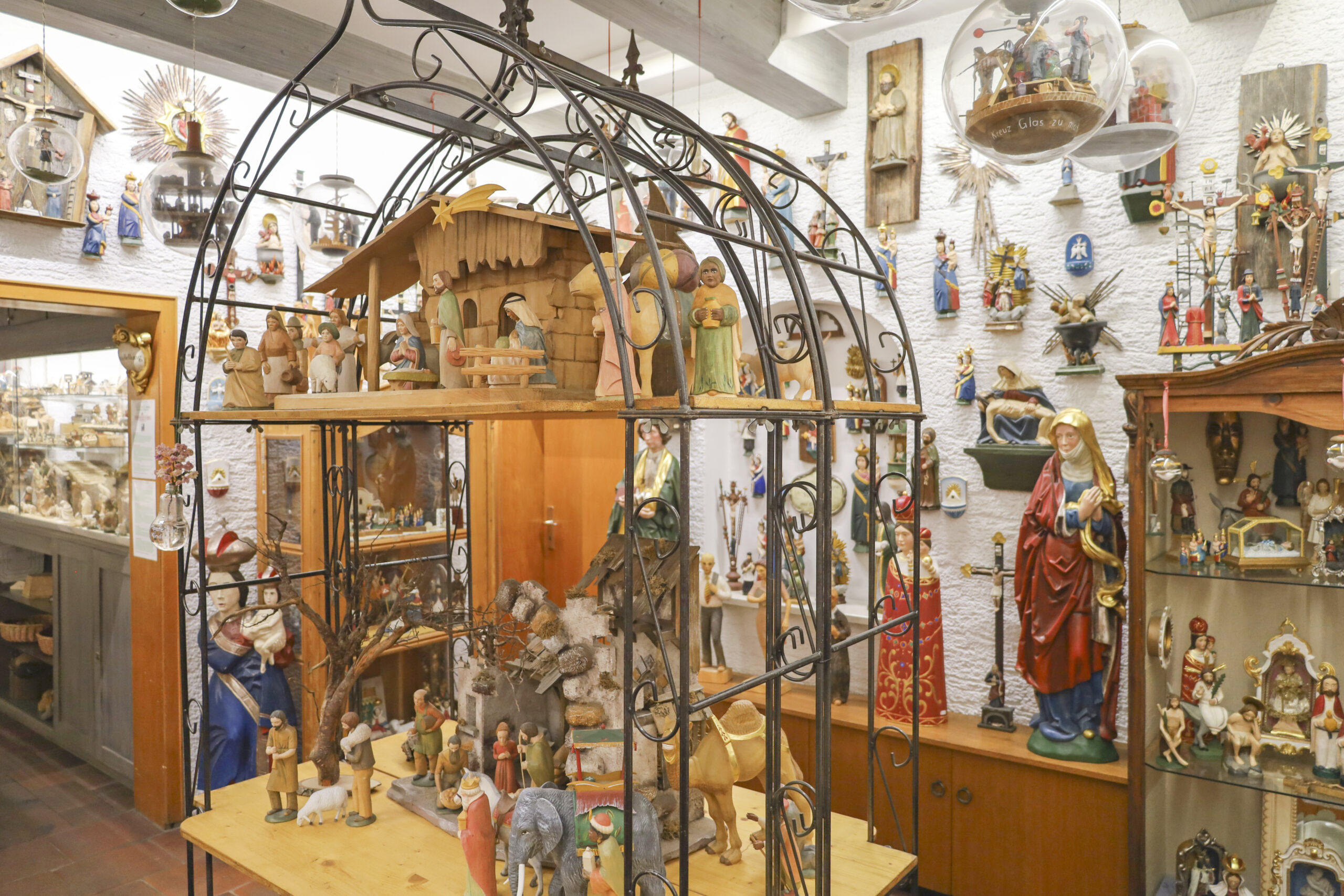 Andächtig kniet Maria vor dem Jesuskind. Josef hält eine Laterne in die Höhe, während sich Hirten, Könige und Tiere um die Krippe versammelt haben. Wenige Meter entfernt hängt der Heiland in dutzendfacher Ausführung am Kreuz. „Im besten Fall erkennt man die unterschiedlichen Darstellungen und Charaktere der Figuren allein an den geschnitzten Gesichtern“, sagt Sebastian von Zülow. Ihn kennen alle hier im niederbayerischen Bodenmais nur als den Herrgottschnitzer, der passenderweise am Dreifaltigkeitsplatz seine Arbeit verrichtet.