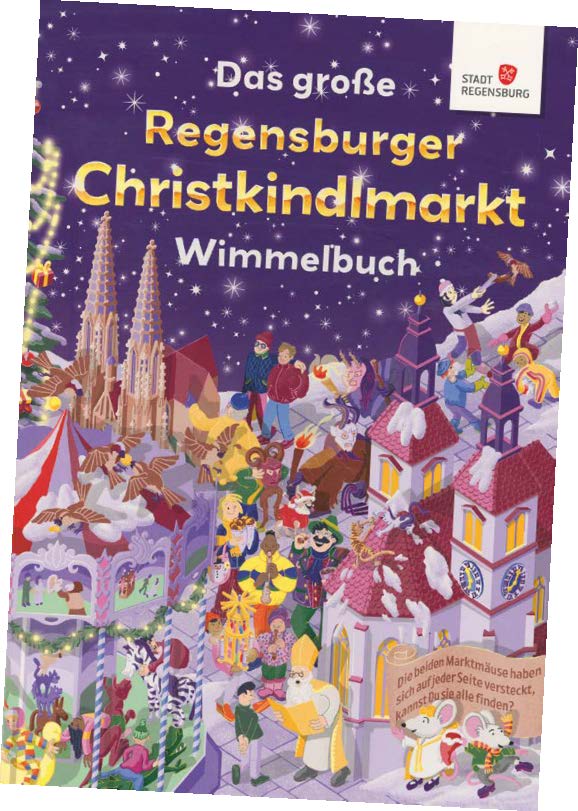 Auf den bunten Seiten, illustriert von Sebastian Franz, Kristina Tautz und Markus Fiegen, gehen Klein und Groß zusammen mit dem Nikolaus auf eine lustige, abwechslungsreiche und kindgerechte Entdeckungstour – immer auf der Suche, wo im weihnachtlichen Treiben sich wohl die beiden Marktmäuse verstecken. Zwischen bekannten Gesichtern wie dem der Oberbürgermeisterin Gertrud Maltz-Schwarzfischer, Landrätin Tanja Schweiger, Pfarrer Koschnitzke oder Ihrer Durchlaucht Gloria von Thurn und Taxis, finden sich unter anderem auch die berühmten „Regensburger mit Allem“, eine Dackelquadriga in Anspielung auf das Dackelmuseum, das Kinderkarussell und schaurige Perchten.
